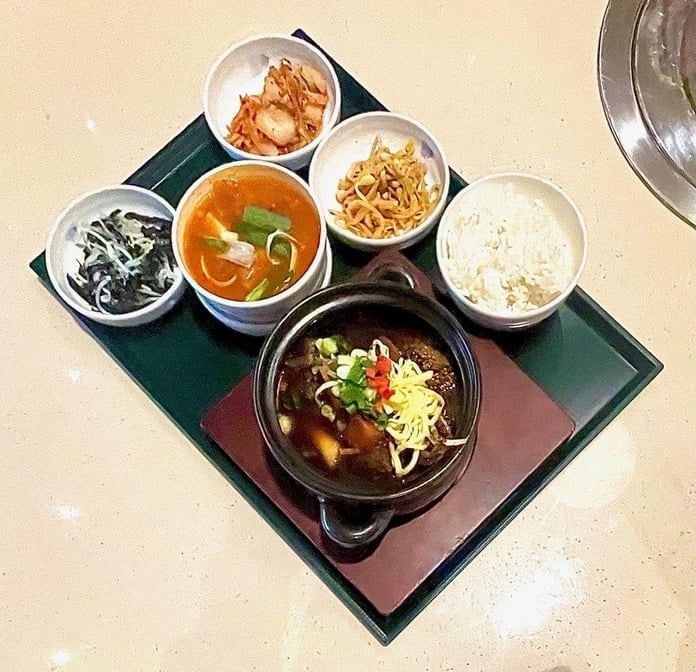 Soy braised bone-in beef short rib, rice cake, Korean radish & carrot with a choice of kimchi stew with pork, bean paste stew, or beef & radish soup