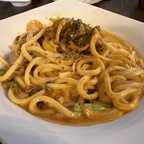 Main - Cream Curry Udon Cream-base sauce with a hint of curry spice and parmesan cheese wok-fried with broccoli, onions, scallions, carrots, and choice of protein. **Medium spicy only**