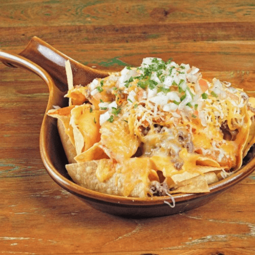 App - Kimchi Bulgogi Nachos Ultimate nacho with a Korean style marinated beef (bulgogi) and pan fried Kimchi. Topped with our house pico de gallo and nacho cheese