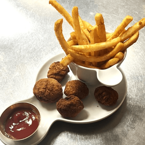 Extra crispy french fries with shredded cheddar cheese & pan-fried Kimchi on top