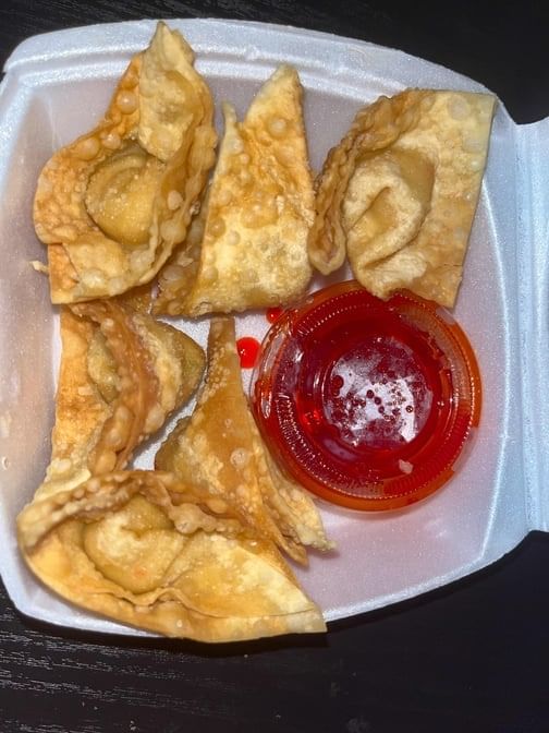 Also known as crab rangoon, our crab angels are lightly crispy wonton wrappers with a soft and tangy cream cheese center mixed with vegetables and crab meat. Served with a small cup of our Sweet and Sour Sauce