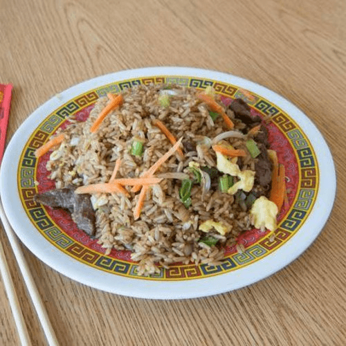 Your choice of 5, 8, or 10 of our Chinese style cut chicken wings, which we marinate and flavor with our very own unique recipe. They're fried until they are perfectly golden brown. Then we serve them along side beef fried rice. Rice also contains egg, bean sprouts, white and green onion