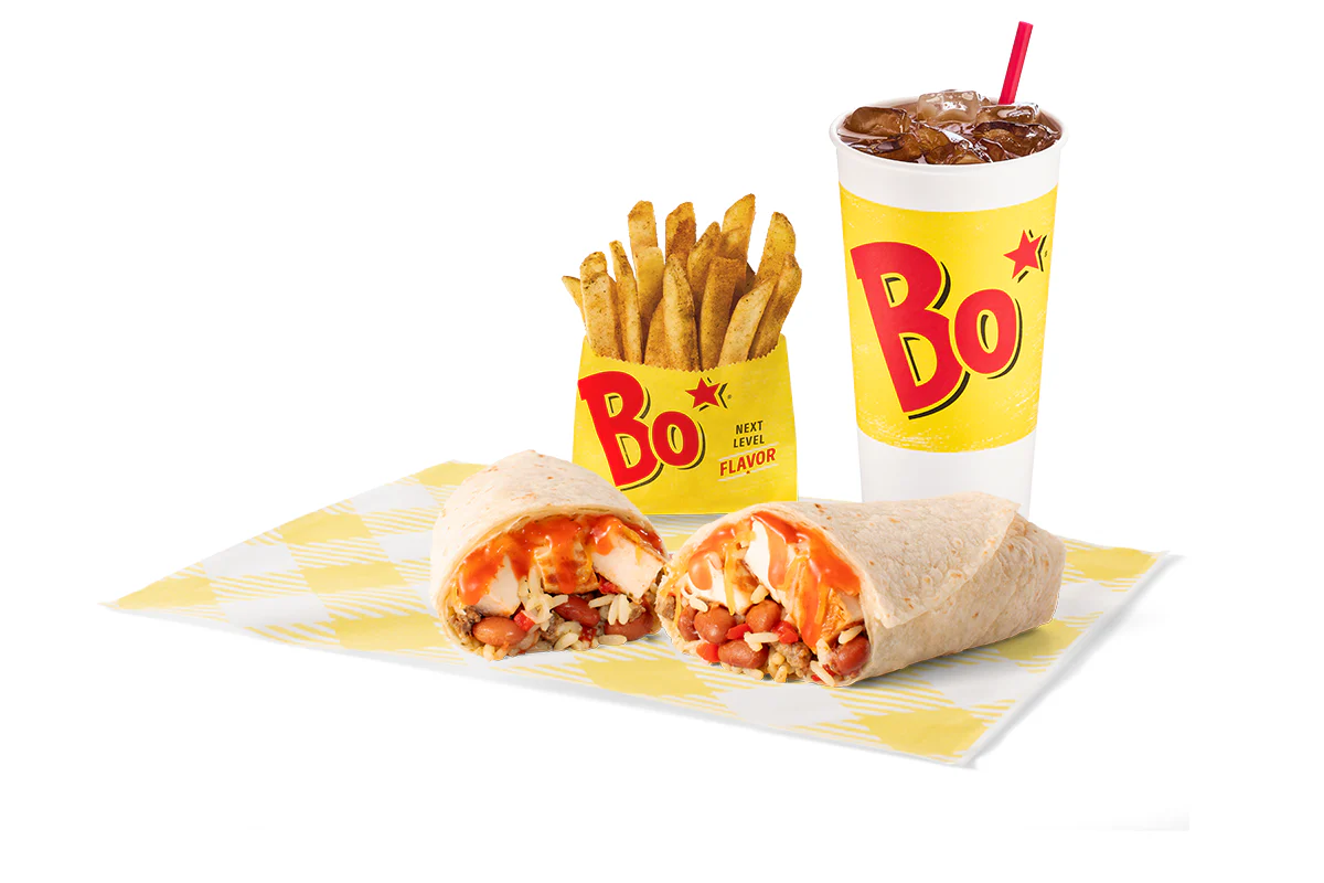 A hearty burrito featuring our tender grilled chicken breast filet, Bojangles’ Dirty Rice®, slow-cooked Cajun Pintos and Monterey Jack cheese, all wrapped up in a warm flour tortilla. Served with your choice of fixin, and a medium drink.